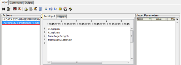 AeroInput.This is the name of the input file that Isight will create from the template file. The aero.exe program expects to find this file in the runtime directory during execution. - Select Save generated file to output file parameter.