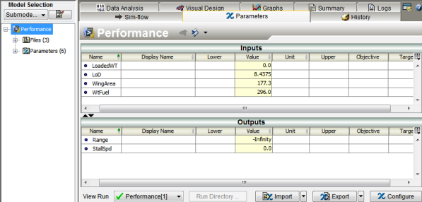 You can use the tab to see the input parameters that were read by the executable and the output parameters that were calculated by the executable.