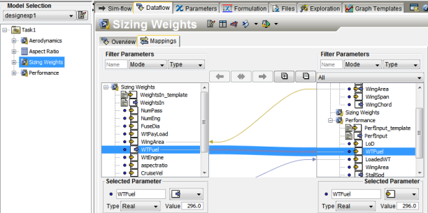 The WtFuel parameter does not appear in the parameter information because you already created it as input parameter for the Performance Simcode component. You need to remove the mapping and change the parameter to input. - Click OK to close the Simcode Component Editor and to save your changes.