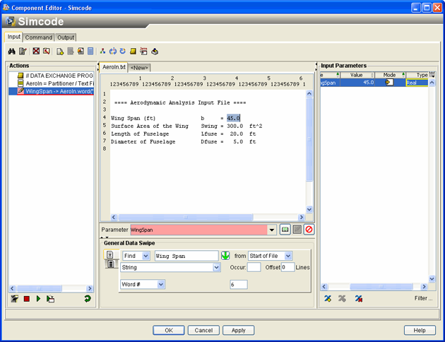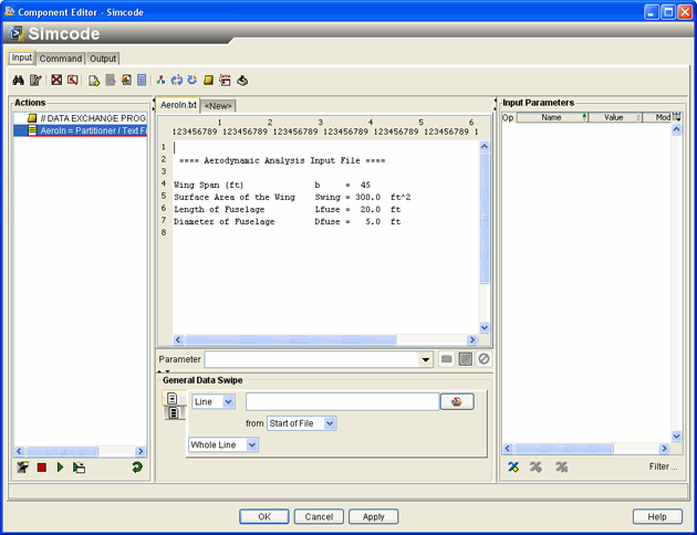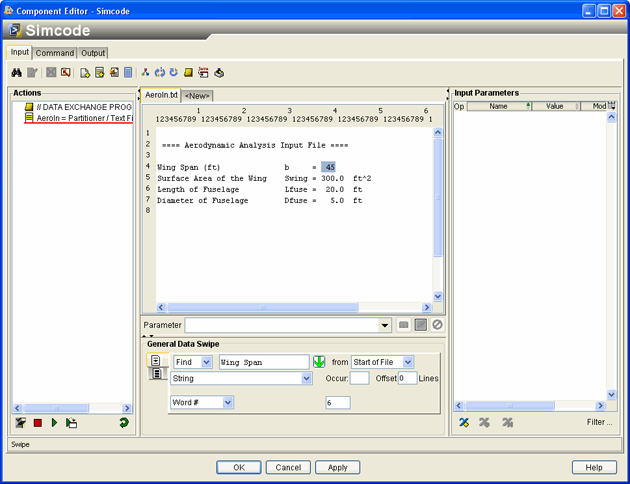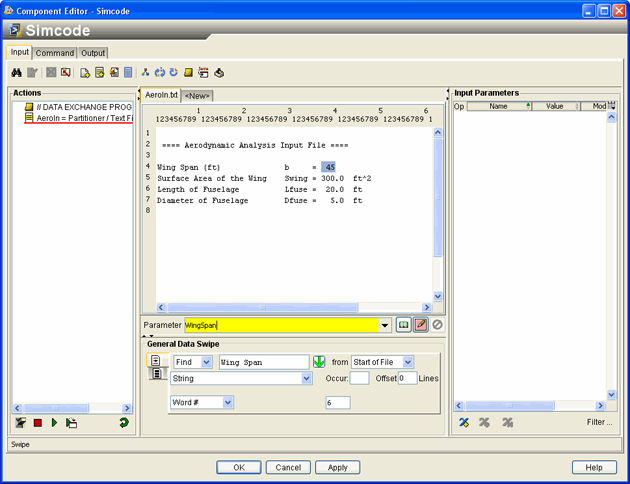 Click the Input tab on the Simcode Component Editor.