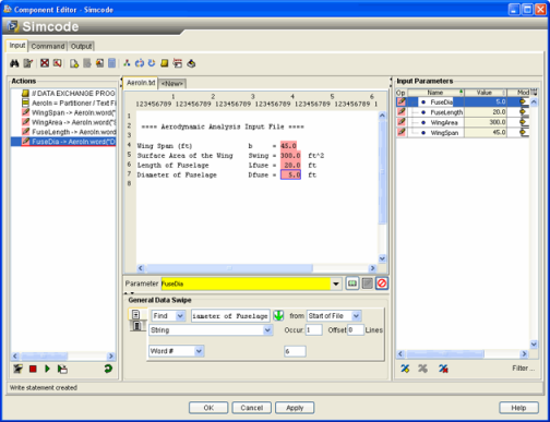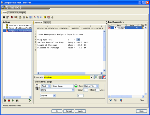 to write a parameter called WingSpan into the input file at the