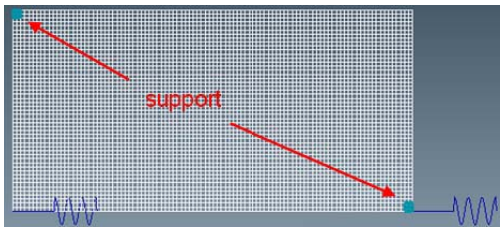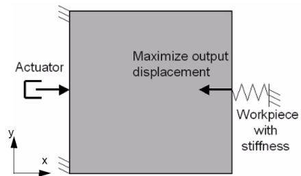 objective function is the minimization of the displacement of the node. The upper left corner and the lower right corner of the half of the model (corresponding to both the left corners and the middle of the right side of the entire model) are the frozen areas. The elements at these points constitute the group support:
