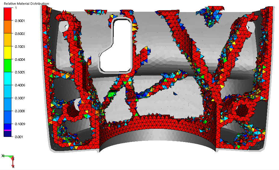 Using a standard casting restriction instead of the rib feature, more materials are accumulated in few areas