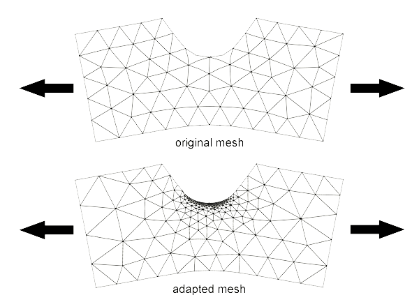 adaptive remeshing, to efficiently determine a good mesh for a model. The