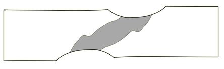Figure 4. Region of active yielding in a doubly-notched specimen. Figure 5. Mesh of doubly-notched specimen before and after adaptive