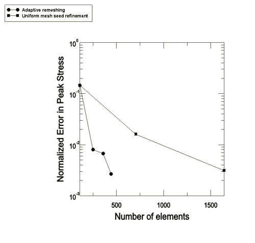 Figure 3. Comparison of adaptive remeshing to uniform mesh refinement based on