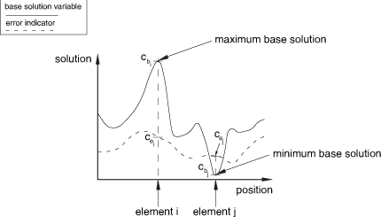 provides an illustration of an error indicator and corresponding base solution