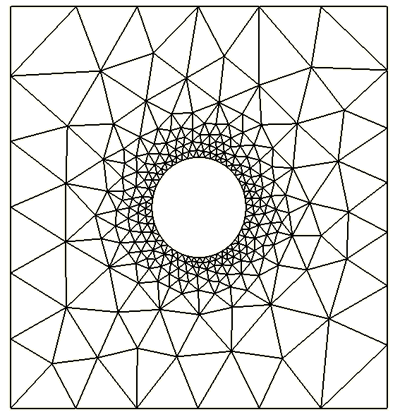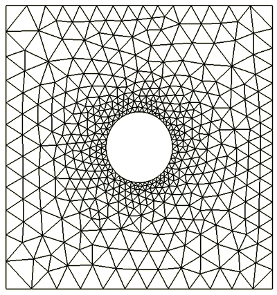 transitioning smoothly to a relatively coarse mesh away from the hole.