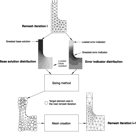 The sizing method calculates new element sizes during the adaptive remeshing