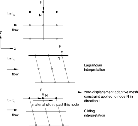 Lagrangian adaptive mesh domain, as shown in Figure 12(a). In this case all nodes are constrained by an equation to lie in the same plane