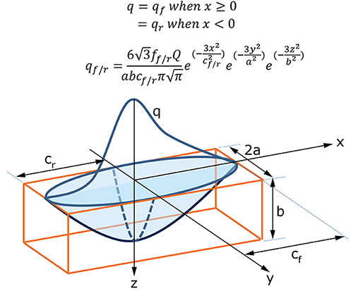 laser energy distribution. Figure 3 shows the Goldak expression for energy distribution,