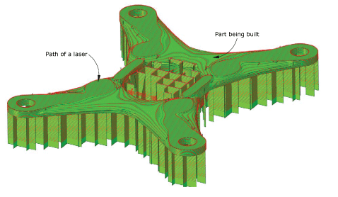 of raw material. Then, a high-powered laser scans a single cross-section of the part over the