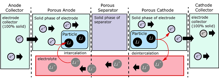 ions in the electrolyte, and concentration in the solid particles used in the electrodes.