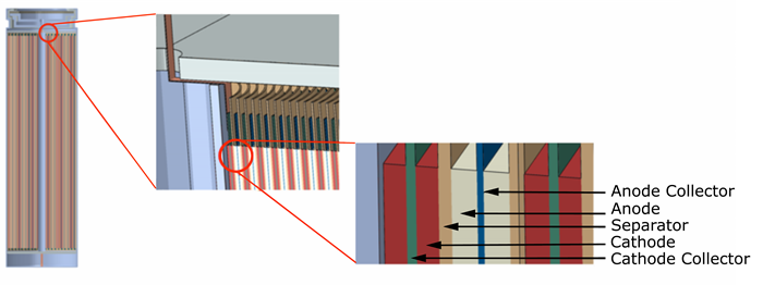 Figure 1 shows a typical jelly roll configuration of a cylindrical battery. The