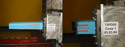 Figure 1. The plain cone test setup (left) and the plain cone sample at test
