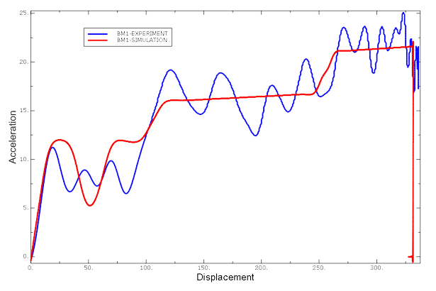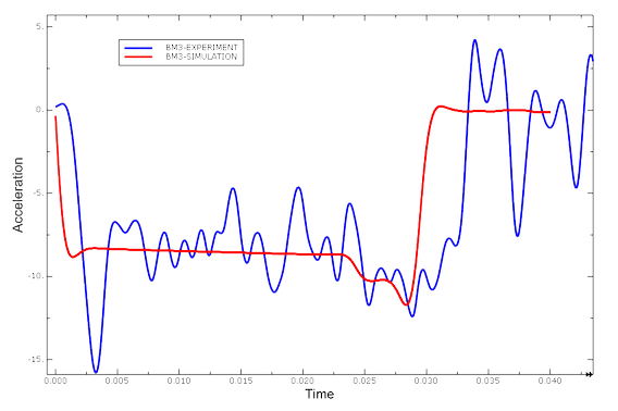 The experimental and simulation acceleration curves match well, with the