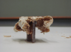 A tapered composite sample is crushed against a stationary rigid surface, as