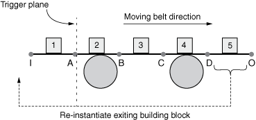 across the trigger plane without a change in direction. In the conveyor belt