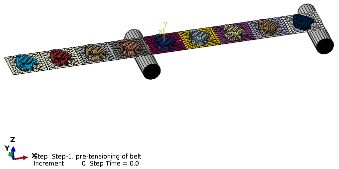 into the desired locations. Contact interaction between the belt and the