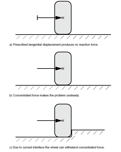 It is cumbersome to model rolling and sliding contact, such as a tire