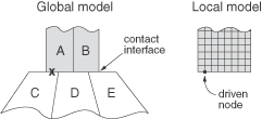 the location of a driven node. For example, adjacent bodies in the global model may have