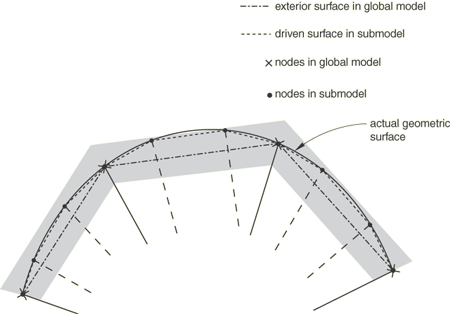 nodes in the submodel can lie outside the exterior surface of the global model,