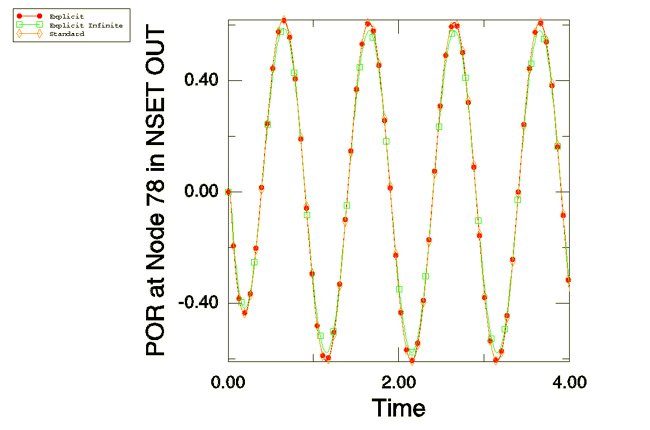 For the transient analyses in Abaqus/Explicit the Bayliss et al. boundary condition is enforced using spherical radiation impedance conditions. On the inner radius of the mesh the shell elements in the three-dimensional case and beam elements in the axisymmetric case are connected to the acoustic domain with a tie constraint. The transient analysis is also performed in Abaqus/Explicit using three-dimensional and axisymmetric acoustic infinite elements instead of defining the impedance. Two additional input files, acousticimpsphere_acin3d4_xpl.inp and acousticimpsphere_acinax2_xpl.inp, model the three-dimensional and axisymmetric problems, respectively.