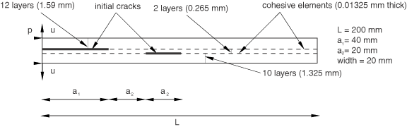 to predict mixed-mode multidelamination in a layered composite specimen.