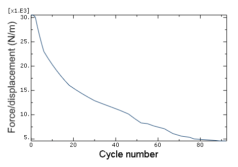 peak prescribed displacement (stiffness) degrades as a function of the cycle