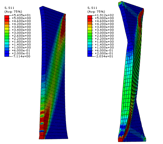 finite element model of the specimens consists of a 20 × 10 × 2 mesh for the
