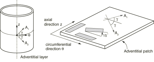 Simple tension of adventitial strip cut at an angle of 15° with respect to
