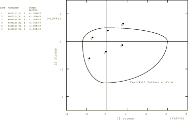 These properties define linear elastic behavior for a lamina under plane stress conditions (Linear Elastic Behavior). More general orthotropic properties (for solid continuum elements) can be specified using the elastic stiffness matrix.