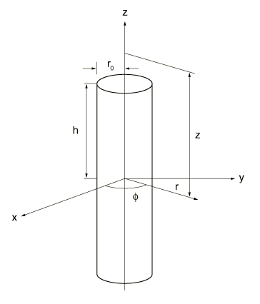 where is the strength of the heat source (heat energy radiated from the source per unit volume per unit time), , and (, , ) represent the coordinates of a point source within the cylindrical volume . The function is expressed in terms of the complementary error function as