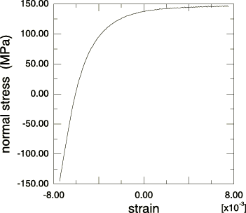 The second half of the saturated cycle used for calibrating the kinematic hardening material parameters C and is shown in Figure 2. The data are entered as values of yield stress, , versus plastic strain, , to define the stabilized cycle of the metal plasticity model, where