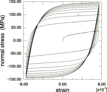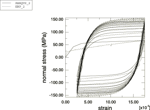The model is calibrated using test data from a uniaxial experiment (Figure 1) obtained at a strain range 1.5%. Both the kinematic component and isotropic hardening component of the model are calibrated.