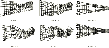 ProductsAbaqus/Standard Elements testedCPS4 CPS4I CPS8 CPS8R CPS6 CPS6M Problem descriptionModel:Plate thickness = 0.05 m. Material:Young's modulus = 200 GPa, Poisson's ratio = 0.3, density = 8000 kg/m3. Boundary conditions:along the y-axis. at all nodes. Reference solutionThis is a test recommended by the National Agency for Finite Element Methods and Standards (U.K.): Test FV32 from NAFEMS publication TNSB, Rev. 3, “The Standard NAFEMS Benchmarks,” October 1990. Mode shapes predicted by Abaqus (for element type CPS4)![]() Results and discussionThe results are shown in the following table. The values enclosed in parentheses are percentage differences with respect to the reference solution.