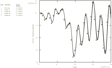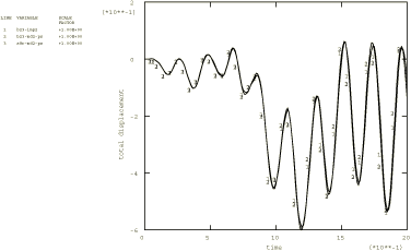 Three models with different “base” organizations are used for the modal dynamic analyses. In the first model the base motion is invoked without referring to a secondary base. In the second model the base motion is invoked without referring to a secondary base for the right-end support—the primary base—and with the base name for the left-end support, which is declared in the frequency step as a secondary base, named NODE21