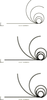 The cantilever is 10 m long. A circular pipe cross-section of outer radius 0.1 m and wall thickness 0.01 m is used for closed-section beam elements so that the beam is moderately slender (100). This type of problem becomes considerably more difficult numerically as the slenderness ratio increases. The standard beam elements in Abaqus should have little difficulty up to slenderness ratios of 1000, but above that the hybrid elements are usually required. However, for this example we have elected to use hybrid elements throughout since they result in better convergence for problems where the beam remains inextensible—in this case, the moment load problem, and to a certain degree, the transverse load problem. Young's modulus is chosen as 100 MPa. The model consists of three elements for the transverse load case and either 10 or 20 elements for the moment load problem, depending on whether linear or quadratic elements are used.