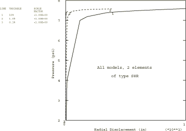 pressure is 0.05171 MPa (7.5 lb/in2). The solutions obtained with the various Abaqus models are shown in Table 1. Except for the coarsest models, all of the models give the critical pressure quite