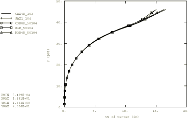 analysis. Figure 8. Pressure versus deflection results for load ramp duration of 0.01 sec,