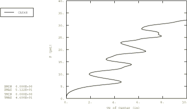 shows a plot of pressure versus displacement of the centerline node of the disc