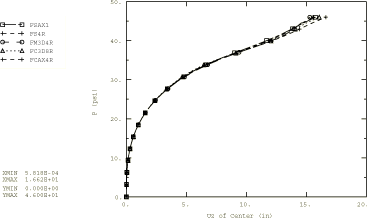analysis. Figure 6. Comparison of pressure-deflection results,