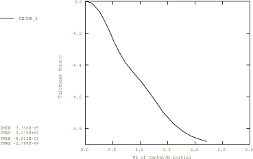 analysis. Figure 5. Thickness strain versus central displacement for the axisymmetric