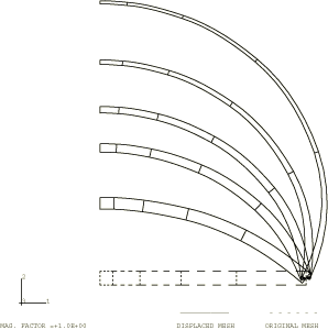 analysis. Figure 3. Displaced shapes for the axisymmetric continuum mesh, thick disc