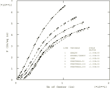 pressure for the disc to displace a certain amount. Models using the hybrid CAXA elements produce the same axisymmetric solutions when