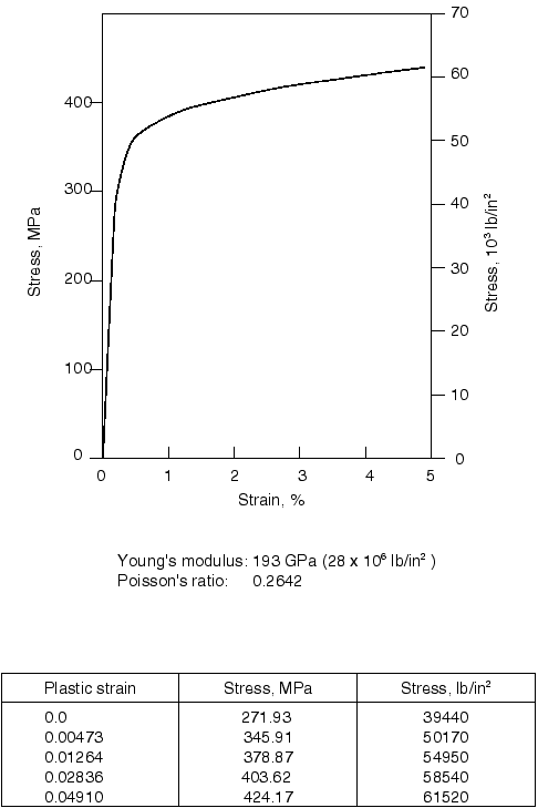 measured response of type 304 stainless steel specimens at room temperature, as