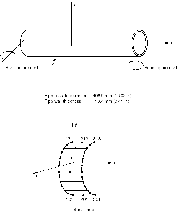 axial segment of general 8-node shell elements (type S8R5). This case is somewhat more complicated because the ends of the