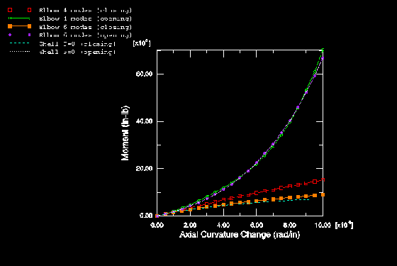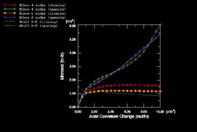straight, elastic pipe. Figure 9. Moment-curvature—comparison of shell and elbow models, initially
