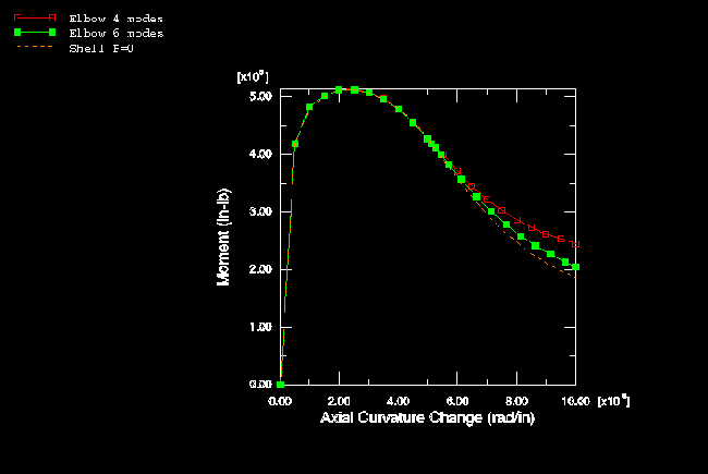 curved, elastic pipe. Figure 15. Moment-curvature—comparison of shell and elbow models, initially