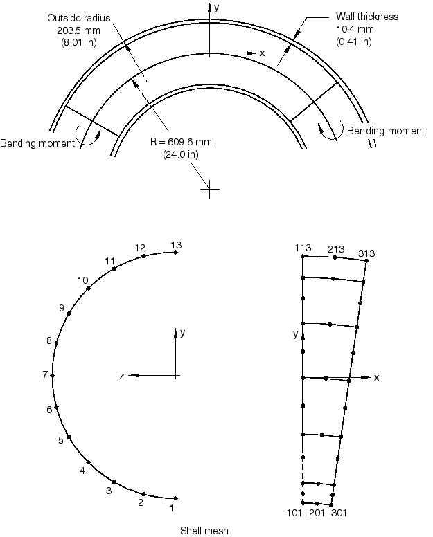 The shell element model has six elements of type S8R5 around the half-pipe. Mesh convergence studies, not included in